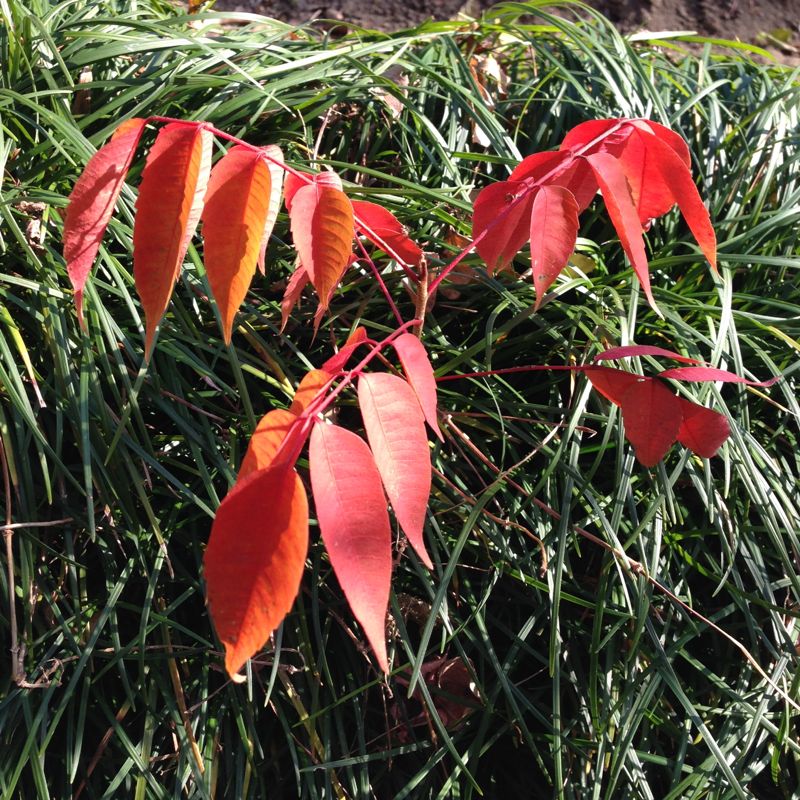 これは庭の片隅に生えた小さい物だが、家の西側には5m程の高さの物がある。秋の紅葉は綺麗だが、その後の落ち葉がもちゃつけだ。
